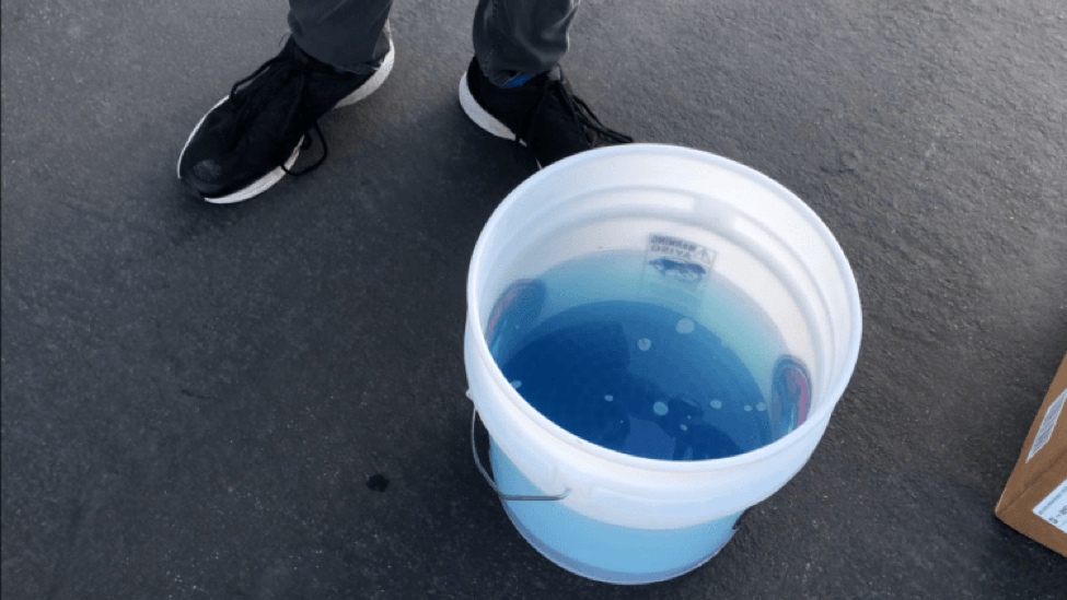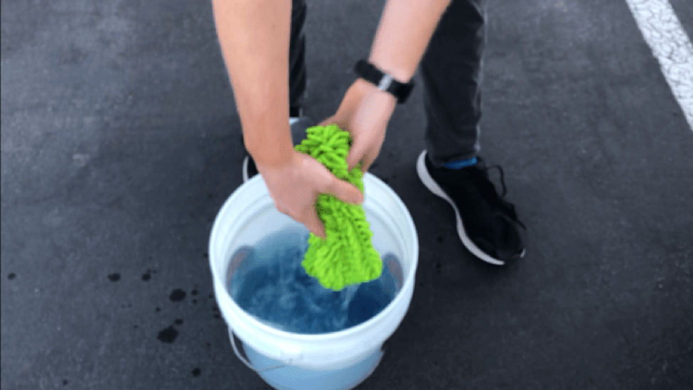 Put the advisable amount of solution in your bucket and make full it with h2o. You should exist able to fill your bucket upwards in a sink or a bathtub. Many detailers employ this type of rinseless wash on nearly of their details. If you exercise have a hose you can use that and arrive even easier. But you'll be only fine without ane. Don't forget to use your dust baby-sit. Take your bucket out to your car and put your wash mitt in the bucket.