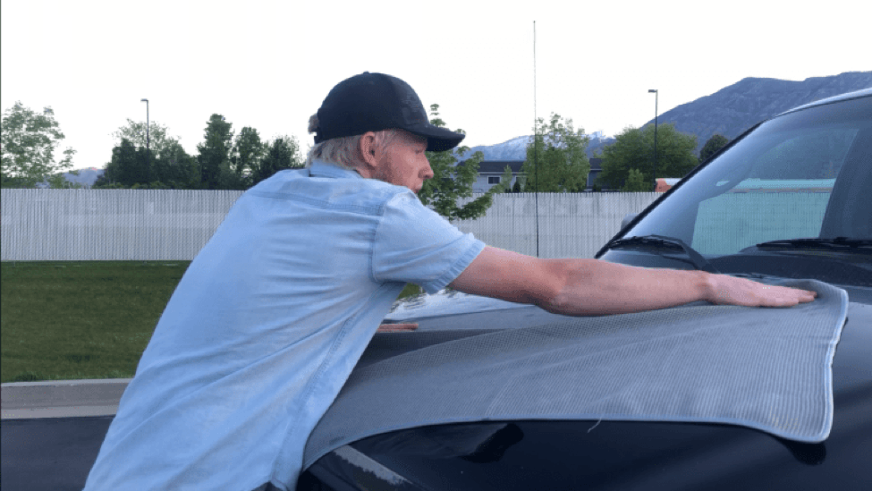 Information technology'due south important to scroll the towel as you wipe off the waterless wash. That way yous avoid spreading any dirt back into your vehicle's paint. Afterward the first wipe, you need to turn to a clean side of your towel and repeat the process, turning to a clean side of the towel with each wipe.